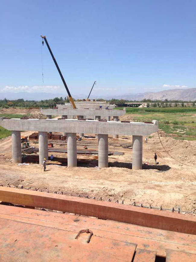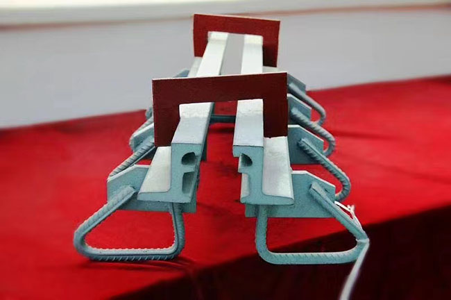 車輛的行使安全。橡膠充氣芯模上浮的問題可以用以下方法解決:采用定位鋼筋的方法來固定,具體為首先在綁扎鋼筋時根據(jù)設(shè)計空心位置、尺寸預(yù)先綁扎圓形抗上浮鋼筋,添加空心板氣囊內(nèi)模定位鋼筋并綁扎牢固,抗上浮鋼筋直徑為φ 8-10mm ,間距為50-80cm ,其次在混凝土澆筑過程中在空心板氣囊頂均勻墊上五道條型鋼板,將卡具壓于條形鋼板上并與側(cè)模用螺栓鎖牢。橡膠充氣芯模該方法不僅改善了頂板的厚度及均勻性,同時使也解決了腹板的厚度和均勻性的問題。
